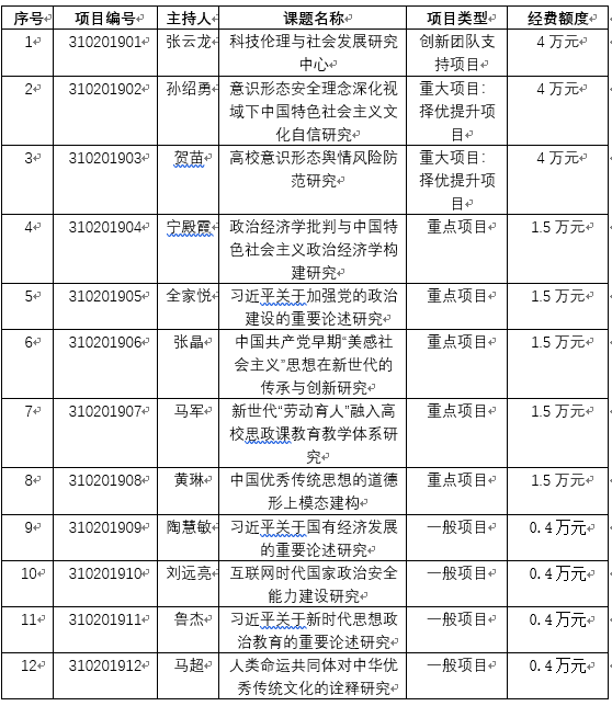 根据太阳城app 《中央高校基本科研业务费实施办法》有关规定,我院2019年度中央高校基本科研业务费项目通过匿名评审,立项12项,现予以公布。