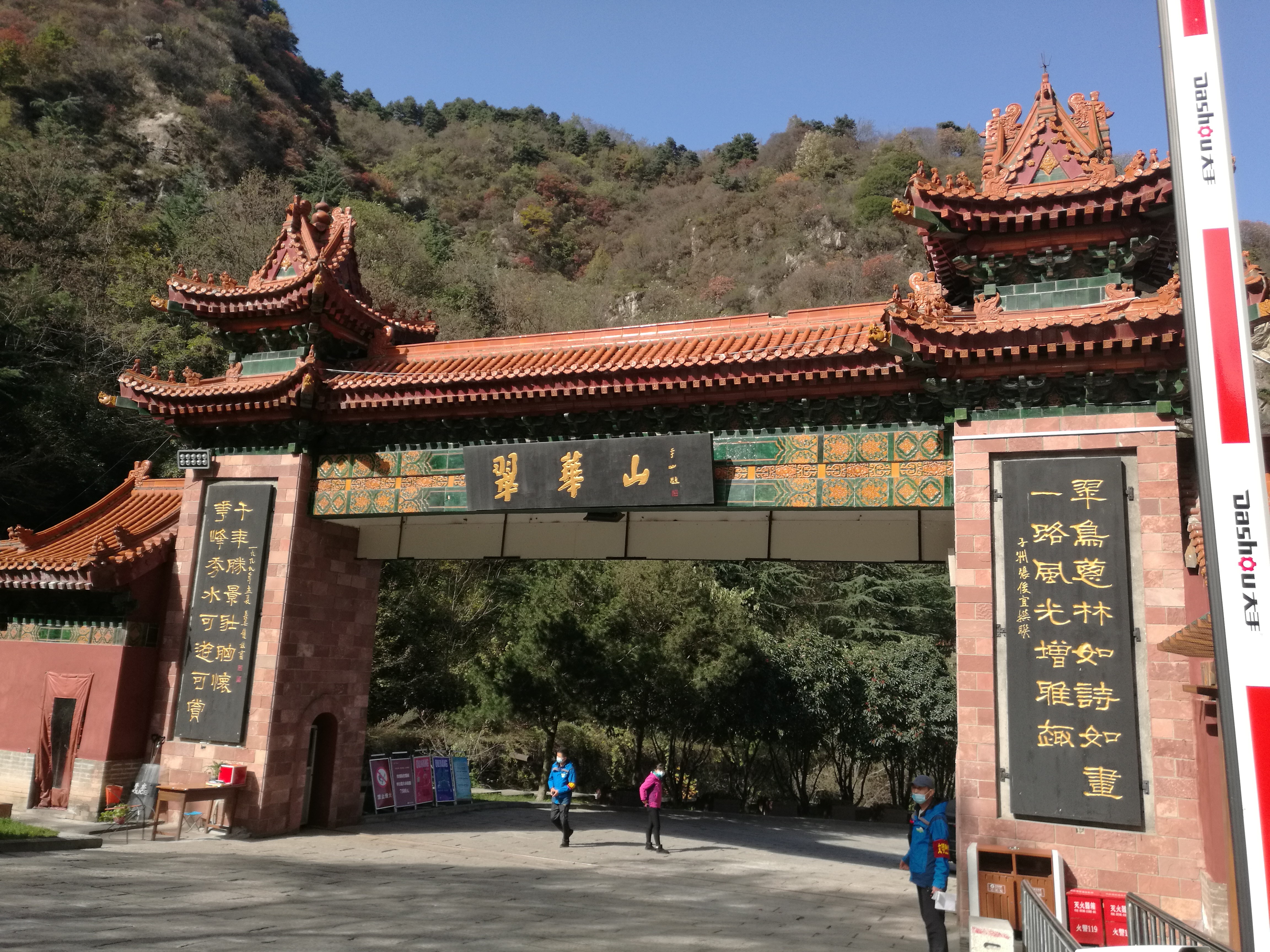 2020年11月1日清晨七点半,身着户外装的队员们分别从友谊校区角楼与长安校区校门乘车前往翠华山地质公园。九点左右,两支队伍安全抵达翠华山脚下。秋天的翠华山景色怡人,山间呈现出五彩斑斓的迷人景色。黄色银杏叶和梧桐叶铺满了翠华山,放眼望去,红色枫叶层林浸染,干枯的老树上挂着红彤彤的柿子,点缀着这宁静的秦岭大山。