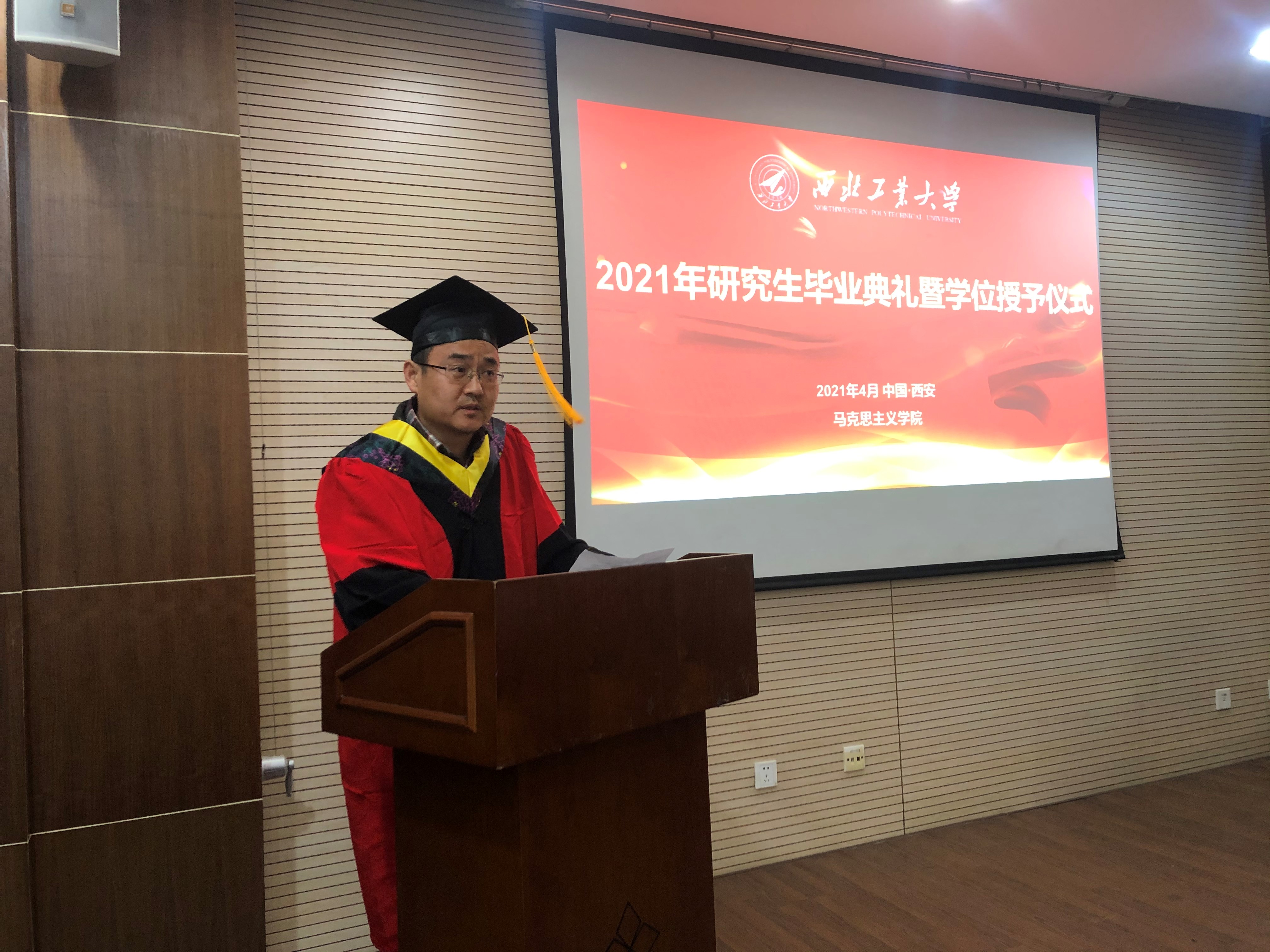 之后,李刚为大家介绍了学院为毕业生们准备的独具马院特色的毕业礼物,希望大家可以做到“一辈子马克思主义者”“在马信马心心相印”“包在马克思身上”,在西工大留下印记,在马院留下印记,带着学院的祝福坚定地奔向未来的人生旅途。
