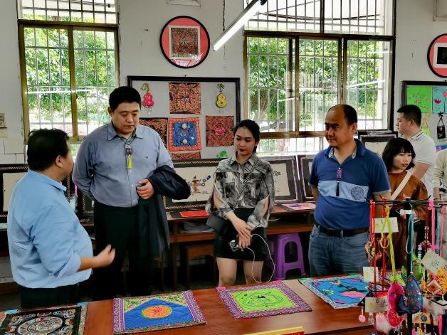 4月22日下午两点,融水苗族自治县民族中学副校长陈慧宁对马院师生代表的来访表示热烈欢迎。在陈校长的带领下,我院师生代表参观了校园体育场、刺绣工作坊和芦笙室,通过校园文化中的民族元素,深刻感受到颇具特色的苗族文化风情。