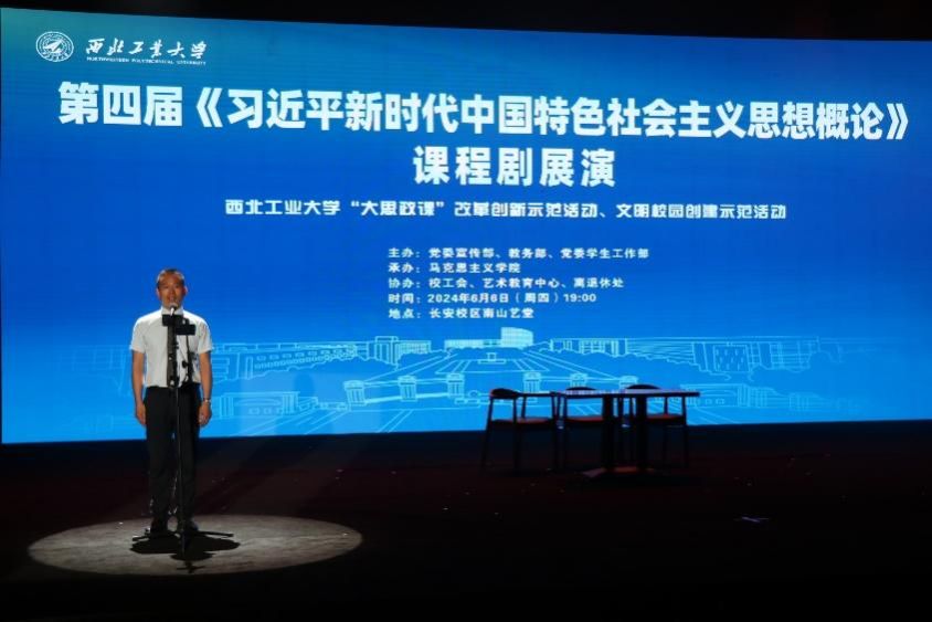 承办的“领航! 领航!第四届《习近平新时代中国特色社会主义思想概论》(以下简称《概论》)课程剧”在西北工业大学长安校区南山艺堂举行。陕西省委宣传部理论处处长高宝荣,教育工委宣传部副部长王世娟,西北工业大学党委副书记杨晓,中国教育报、西部网等媒体代表,以及西安交通大学、西安建筑科技大学、西安音乐学院、空军工程大学、西北大学现代学院等高校马院同仁,校内相关部门和学院师生代表等莅临现场观摩指导。