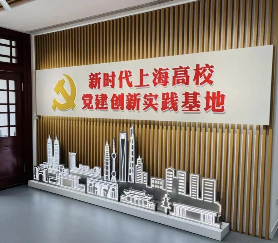 随后,杨正源同学带领实践团队参观了位于复旦大学马克思主义研究院的新时代上海高校党建创新实践基地。该实践基地以大量图片、详实数据、典型案例等全面回顾了上海高校的百年奋斗征程,全景式展现了新时代上海高校党建创新实践成果,