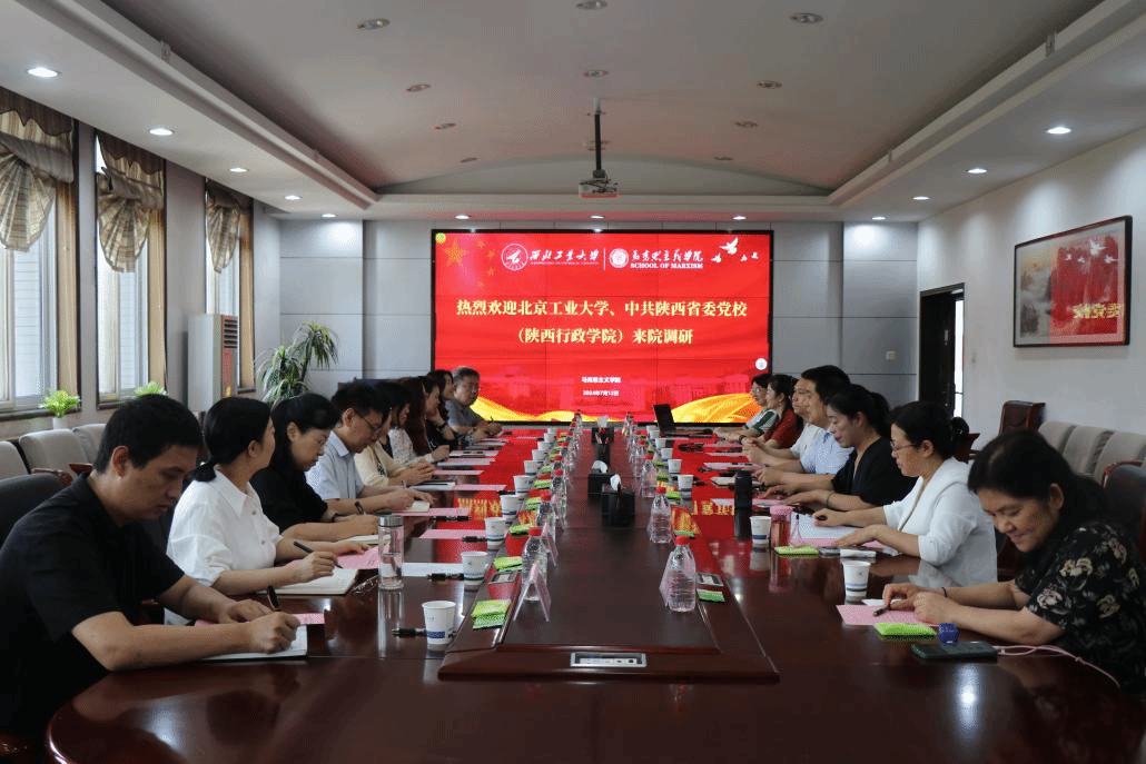 宣传片,接着李刚代表学院对北京工业大学、中共陕西省委党校(陕西行政学院)的来访表示欢迎,并向对方单位介绍了本次参会的相关人员。随后对学院概况、“127”目标、思政课建设、“思创空间”等内容作详细介绍。
