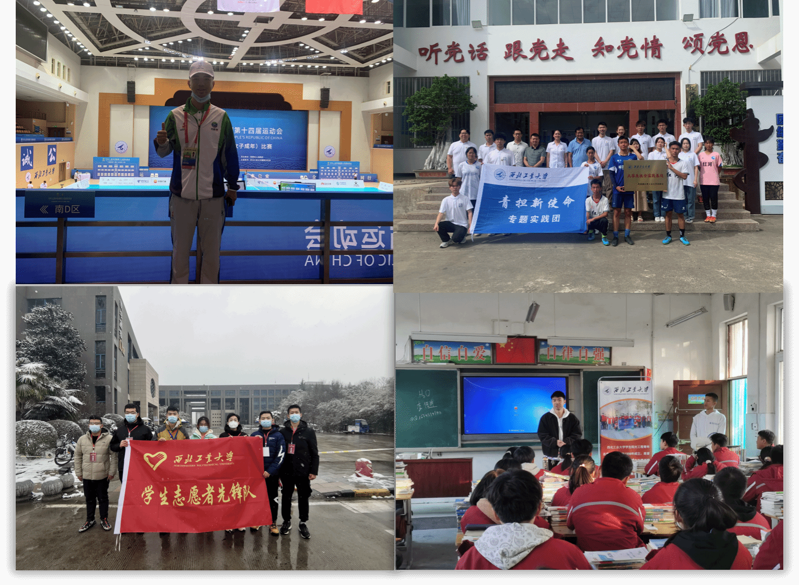 他踊跃投身各类社会实践与志愿服务,累计服务时长达1051小时。在十四运会和残特奥会赛事期间,报名成为“小秦宝”志愿者,负责观众进出场流线图设计和现场座席服务工作,累计服务2000余人次。在疫情防控期间,他身披防护服上阵一线,协助完成学校28轮次全员核酸采样,组织学生党团干部、退伍大学生成立学校研考专项服务队,承担研考期间物资转运与考务保障。在学生离校返乡之际,他主动请缨驻守机场站点,护送2824名在校生分乘38架次航班平安返乡。寒暑假期间,他下沉乡镇基层岗位锻炼,带领社会实践队前往云南红河、广西融水、宁夏盐池、陕西三原等地开展推普助力、义务支教活动。