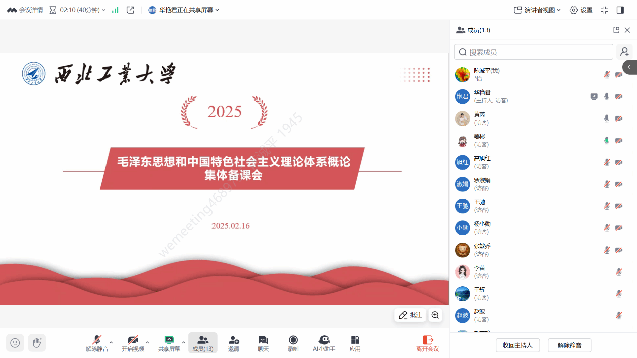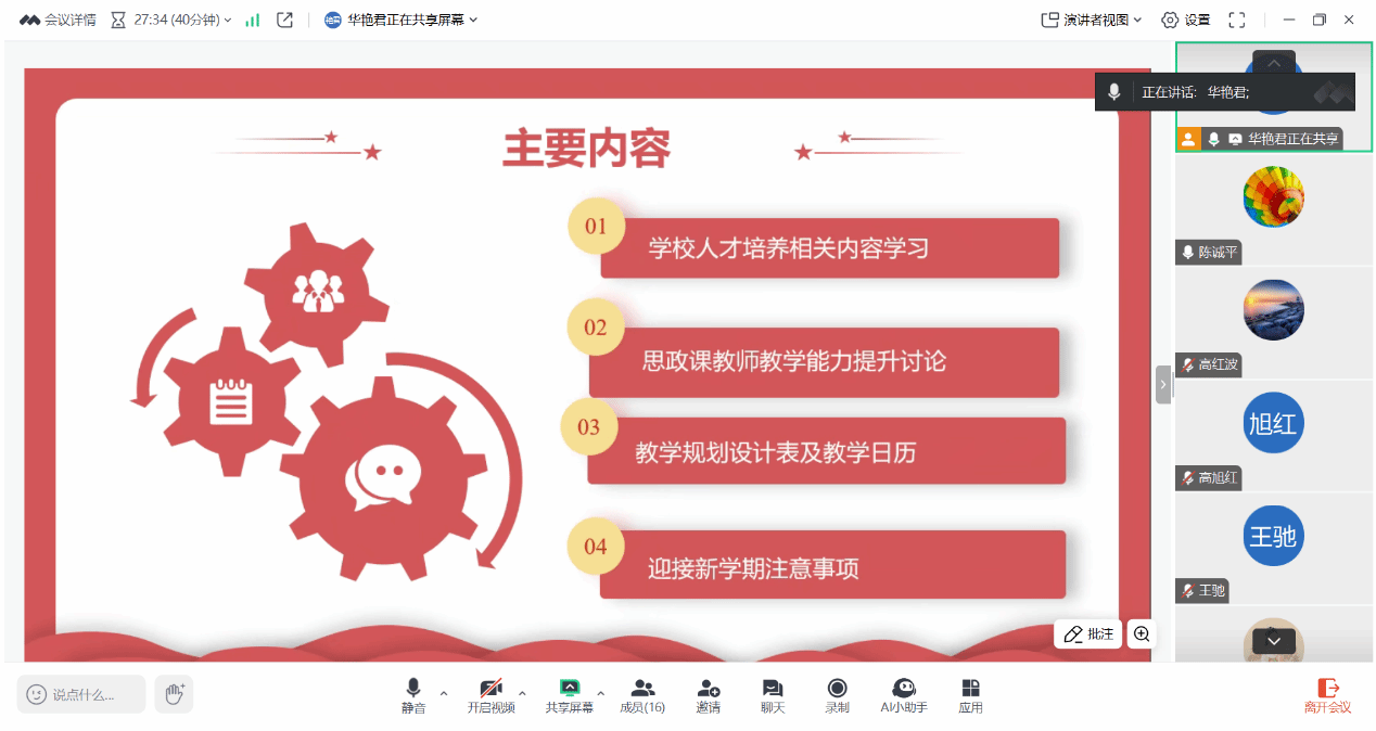 马克思主义中国化研究系通过在线会议的方式开展新学期第一次集体备课,会议围绕“深入学习学校人才培养会议精神,有效提升思政课教师教学水平”展开。备课会由教学主任华艳君主持,全体专兼职教师参加会议。