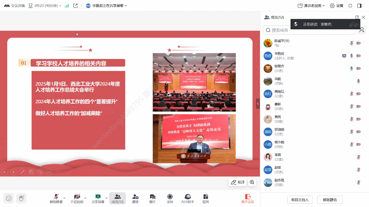 备课会首先由华艳君老师组织与会教师共同学习学校2024年人才培养工作会议精神。接着,全体教师围绕如何有效提升思政课教师教学能力进行了积极发言。