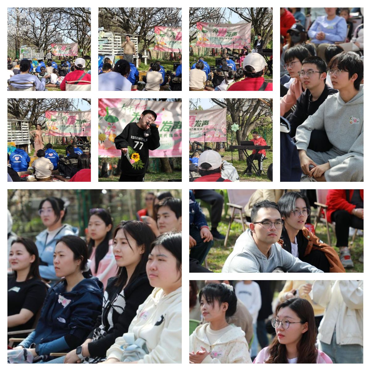 团委书记王换的带领下,赴西安长安区六十亩田户外场地参与“春天花花,为爱发声”——“艺术无残缺”星光音乐会,为此次残健共融的公益活动提供全程志愿服务。本次活动由治心科学研究院与陕西省翻译协会海伦桥国际志愿者中心联合主办,西北工业大学、西北大学、陕西特勤救援总队、星星阳光家园、国投证券陕西分公司等26家学校机构、单位组织大力支持,旨在为患有孤独症、脑瘫、唐氏综合征和智力发育迟缓等特殊青少年群体搭建绽放才华的舞台。