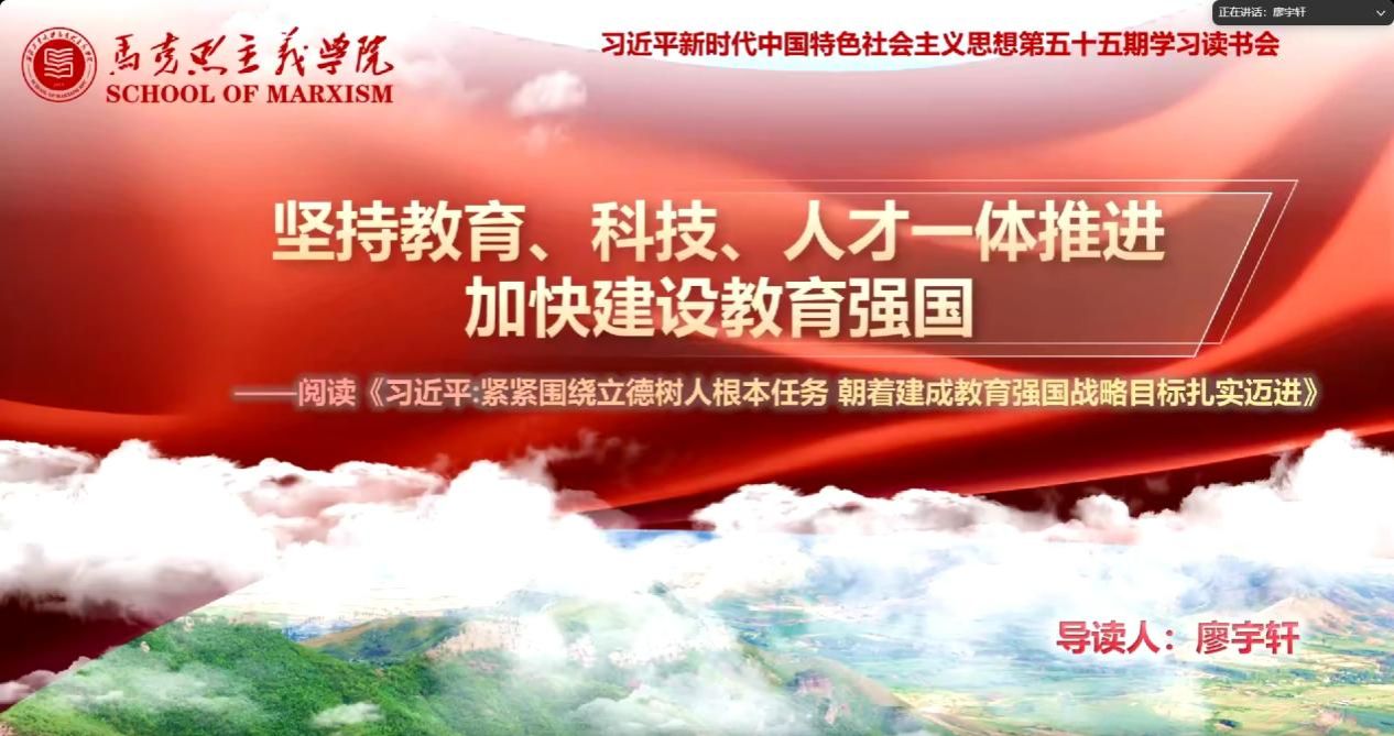 习近平新时代中国特色社会主义思想学习读书小组第五十五期活动以《习近平:紧紧围绕立德树人根本任务 朝着建成教育强国战略目标扎实迈进》为主题进行学习研讨。本次读书会由太阳城app