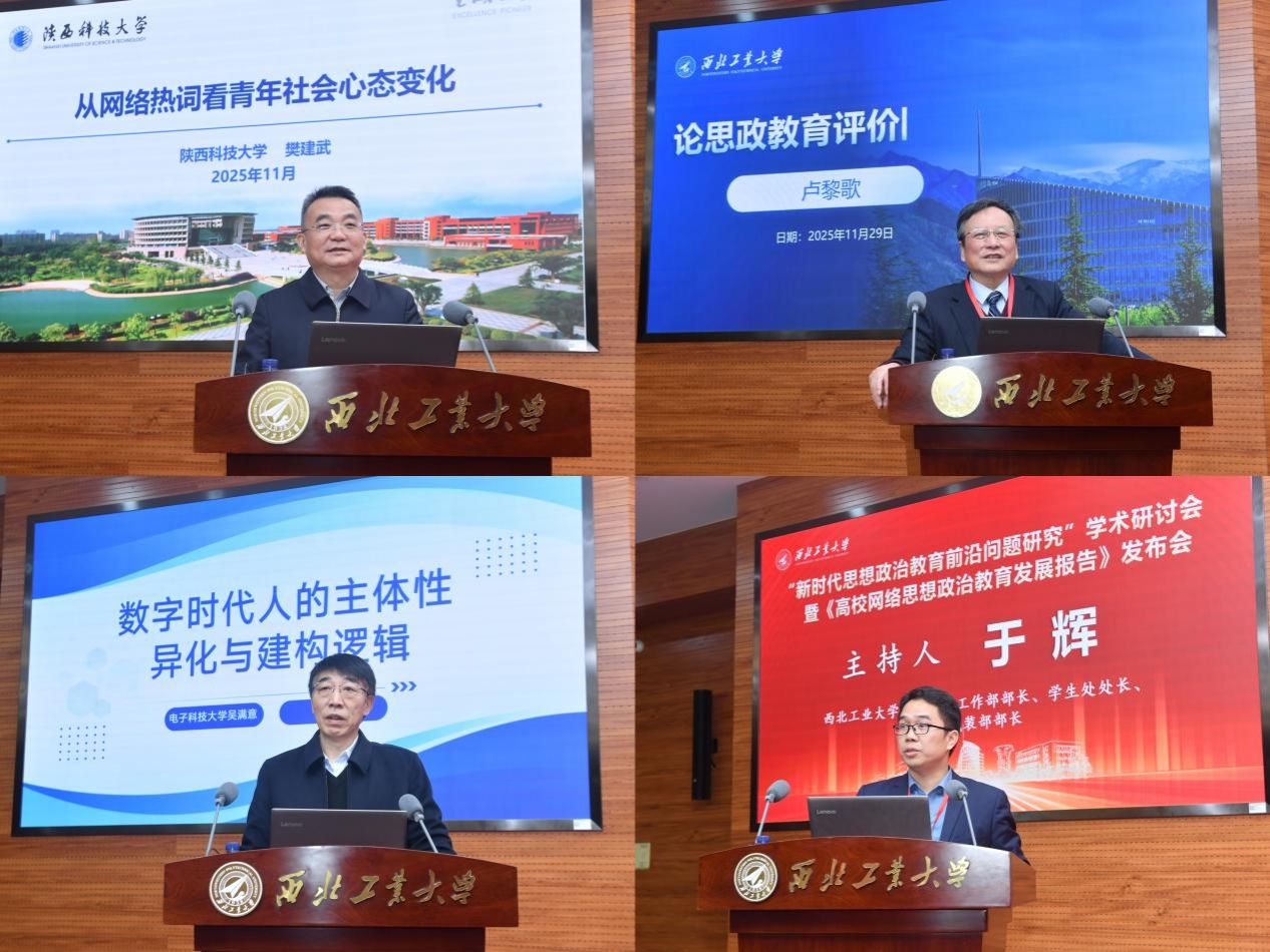 11月29日,“新时代思想政治教育前沿问题研究”学术研讨会暨《高校网络思想政治教育发展报告》发布会在西北工业大学举办,来自100余个院校的267名专家学者参加会议。
