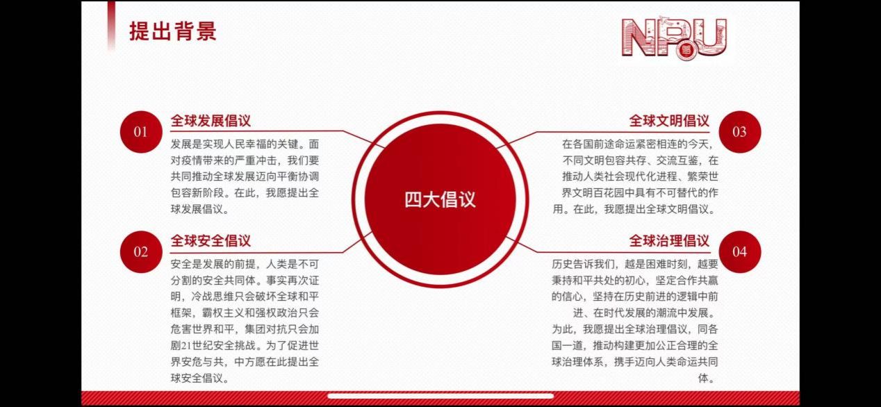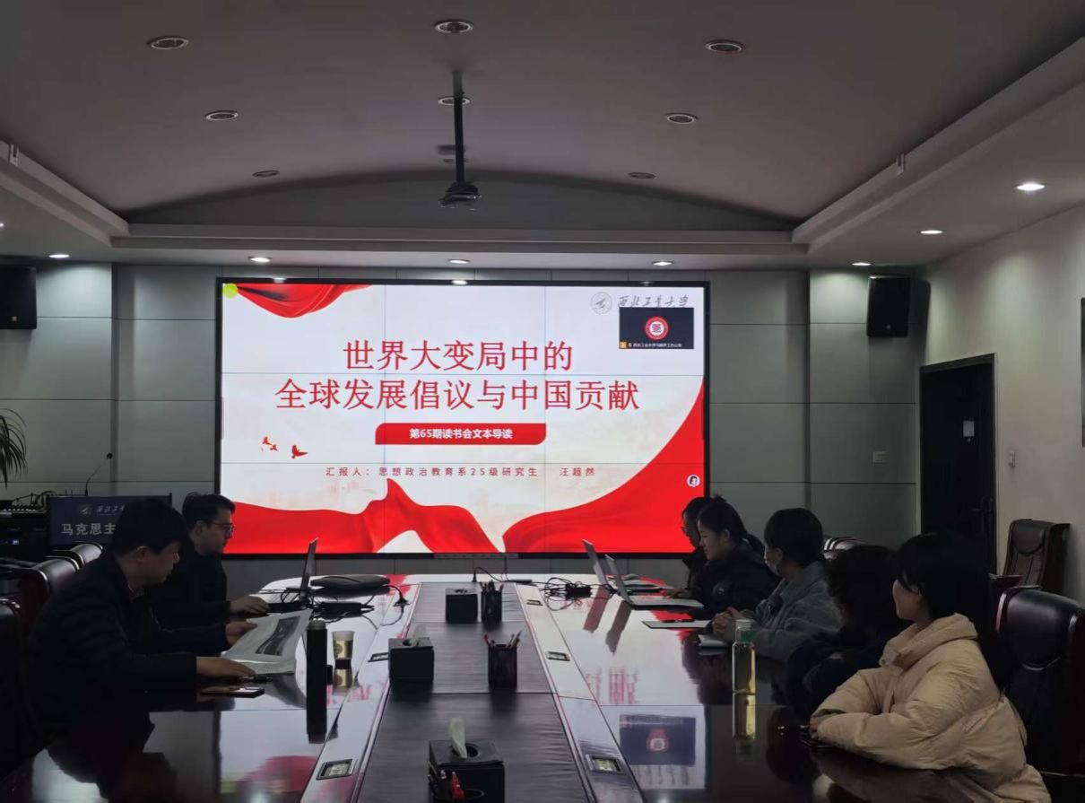 习近平新时代中国特色社会主义思想学习读书小组第六十五期活动以《推动落实全球发展倡议、全球安全倡议、全球文明倡议、全球治理倡议》为主题进行学习研讨。本次读书会由太阳城app