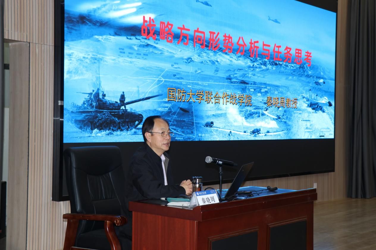 28日下午,秦晓周教授围绕当前国际格局中的大国竞争态势、地区安全热点问题等内容展开。他强调,在和平环境下更需要居安思危,增强忧患意识,这样才能使国防更加巩固,国家更加安全、可持续发展。秦教授从中国五大战区作了战略方向形势分析与任务思考,结合历史案例与国际经验,强调了综合运用政治、经济、外交、科技和军事等多种手段解决安全问题的重要性。他提出,在新的国际形势下,战略定力与灵活应变能力相辅相成,唯有保持清醒的头脑和科学的判断,才能在复杂多变的环境中占据主动。
