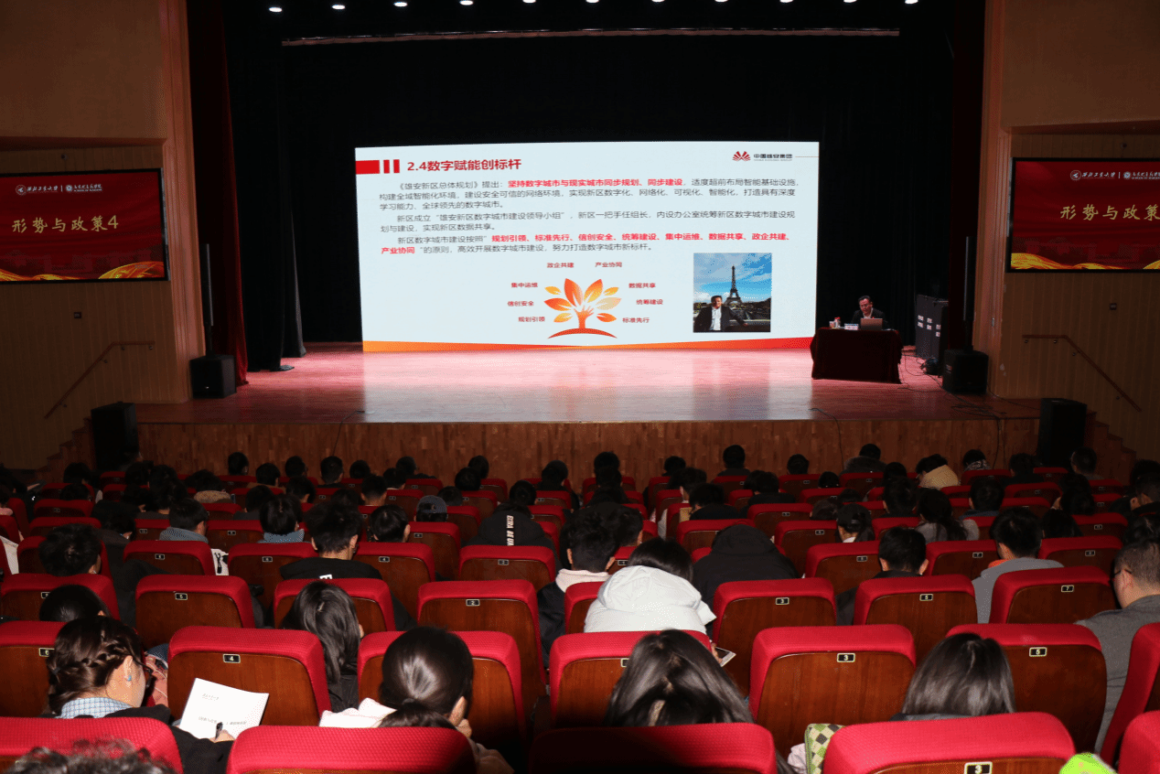 12月29日下午,杨忠老师带来的《创新驱动引领高质量发展——雄安新区规划建设的实践》专题讲座在长安校区南山艺堂举行。杨老师结合自身参与雄安新区规划建设的实践经验,详细介绍了雄安新区的战略定位、规划理念、建设进展以及在城市管理、生态保护和产业升级等领域的创新探索。杨老师强调,国家的高质量发展是雄安新区高质量建设和发展的基础和保证。讲座中,杨老师着重讲解了雄安新区在数字化赋能方面的创新实践。他指出,雄安新区以数字技术为引领,积极推进智慧城市建设,通过构建全域覆盖的5G网络、打造城市大数据平台,以及推动人工智能、物联网等技术在城市管理中的深度应用,实现了城市运行的智能化、精细化和高效化。他表示,作为新时代的青年,要将个人发展与国家需求紧密结合,在未来的学习和工作中发挥更大作用。